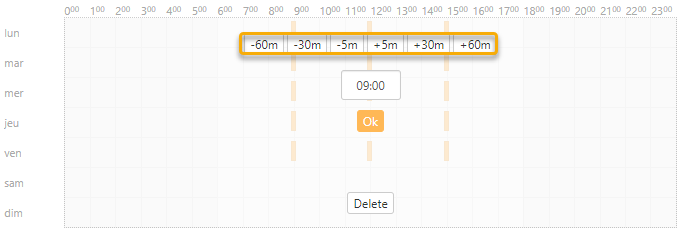 Les boutons +/-60, +/-30, +/-5 permettent de définir les impulsions à un autre moment. Dans le champ ci-dessous, vous pouvez également noter l'heure souhaitée. Cliquez ensuite sur le bouton Ok pour confirmer.