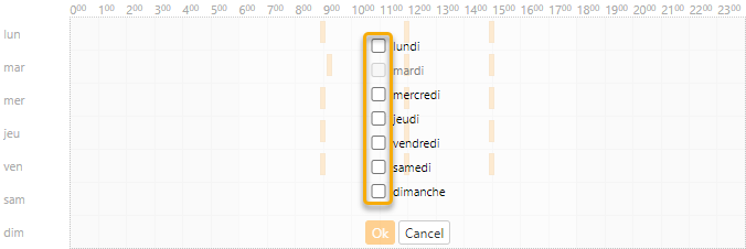 Cochez le(s) jour(s) de la semaine souhaité(s) et confirmez en cliquant sur le bouton Ok.
