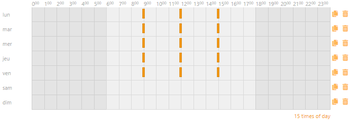 Si vous le souhaitez, vous pouvez copier les impulsions vers d'autres jours de la semaine en cliquant sur le bouton copier