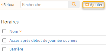 Les horaires de contrôle d’accès déjà ajoutés seront répertoriés.