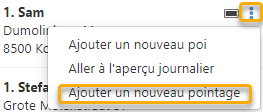 À gauche, les véhicules sont répertoriés avec, à droite du nom, le menu contextuel très intéressant! Dans ce menu contextuel, vous choisissez Ajouter un nouveau pointage.