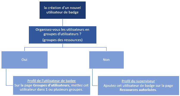 Lors de la création d'un nouvel utilisateur de badge, il est important de définir quels utilisateurs de logiciels (c'est-à-dire les utilisateurs avec un login) peuvent accéder à cet utilisateur et à ses pointages. En d'autres termes, qui est/sont le(s) administrateur(s) de ce nouvel utilisateur?