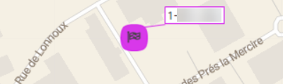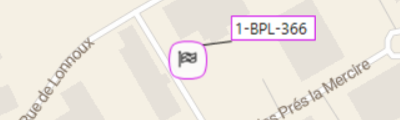 Lorsque les véhicules sont affichés sur la carte, les véhicules sont représentés par défaut par l'icône représentant le statut actuel. L'icône est accompagnée d'un label contenant le nom du véhicule. Les deux ont un fond blanc et une bordure noire.