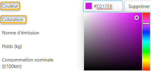 La liste déroulante dans le champ Coloration contient 2 possibilités. Si vous choisissez Icône, le fond blanc de l'icône et du label sera remplacé par la couleur choisie.