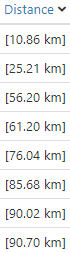 La distance jusqu'au lieu sélectionné est indiquée dans la nouvelle colonne Distance (à l'extrême droite) entre crochets.