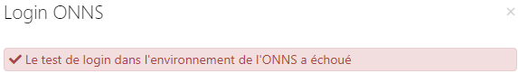 - Si le login rempli n'est pas correct, cela est signalé dans la fenêtre contextuelle suivante. Cliquez sur le bouton Fermer, corrigez les champs incorrects et cliquez à nouveau sur le bouton Valider.
