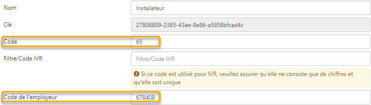 Dans le champ Code de l'employeur, entrez le numéro de l'employeur. Sauf exception, ce sera le même code pour chaque utilisateur.