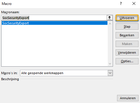 La macro garantit que les données sont exportées dans un format de fichier qui peut être importé dans Okay. Le moyen le plus rapide est d'utiliser la combinaison de touches Alt + F8 pour que la fenêtre suivante avec le nom de la macro apparaisse: