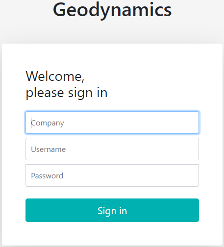 Connectez-vous avec votre login Intellitracer (Geodynamics) et cliquez sur le bouton Sign in en bas.