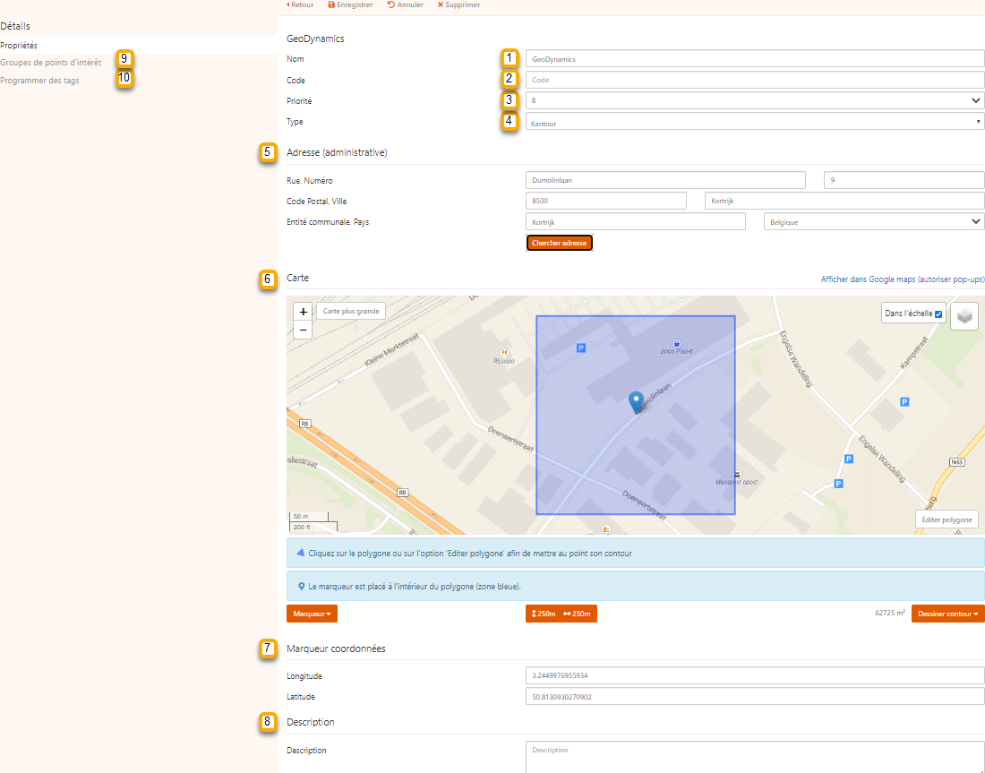 Tout au long de l'application, les points d'intérêt sont listés dans la mesure du possible, et vous avez la possibilité d'ajouter un nouveau point d'intérêt à partir de là s'il n'a pas encore été créé.
