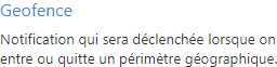 La notification doit-elle être envoyée à l'entrée dans la zone désignée, à la sortie de la zone ou à l'entrée et à la sortie? Veuillez cocher la case de votre choix.