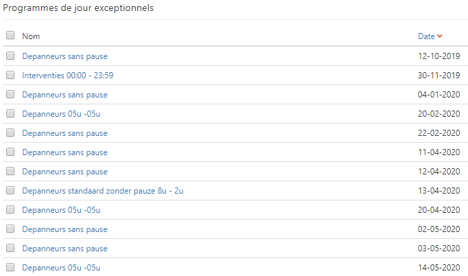 - Dans les données utilisateur, vous pouvez vérifier les dates auxquelles vous avez défini une exception au programme du jour pour un utilisateur.