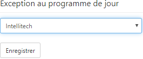 Sous les pointages, le programme du jour par défaut est indiqué et vous pouvez définir une exception au programme du jour. Sélectionnez le programme du jour souhaité dans la liste et confirmez en cliquant sur le bouton Enregistrer.