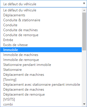 Par défaut, ce champ est défini sur Déplacements, ce qui signifie autant que tous les statuts courants: conduite, immobile, stationnaire (et éventuellement remorquage (towing). En pratique, vous remarquerez que dans la liste des hotspots proposés, le statut sera dans la plupart des cas le statut immobile. Après tout, un véhicule en mouvement est rarement au même endroit assez longtemps pour être nommé ici.