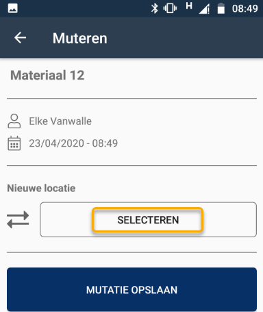 Sélectionnez le nouveau lieu dans la liste et confirmez avec le bouton Enregistrer la mutation.