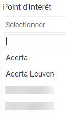 Au-dessus de la liste, vous trouverez le bouton Filtre. Dans la fenêtre qui suit, ouvrez la liste déroulante Point d'intérêt et sélectionnez le point d'intérêt souhaité. Si vous avez une longue liste de points d'intérêt, notez le nom (partiel) du point d'intérêt dans la fenêtre de recherche pour filtrer rapidement la liste.