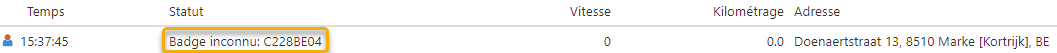 Dans la liste des pointages, l'entrée Inconnu : 00000000 (= le numéro de badge) apparaît dans la colonne utilisateur.