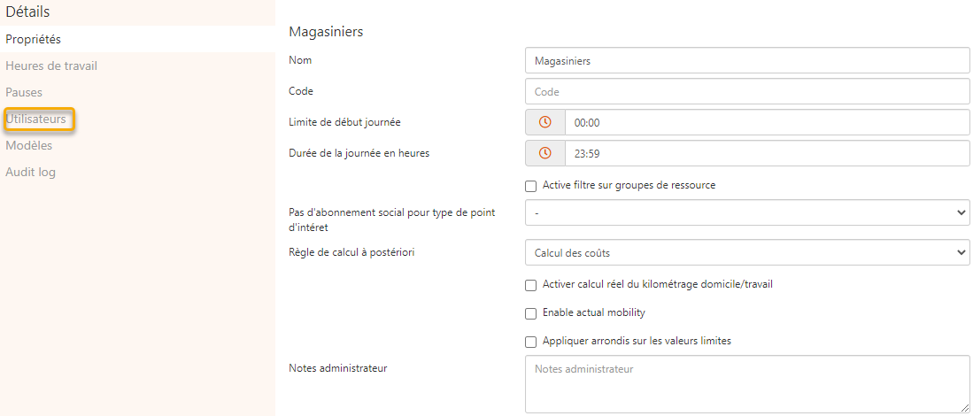 Cliquez sur le programme journalier souhaité dans la liste, puis cliquez dans la marge gauche sur la page Utilisateurs.