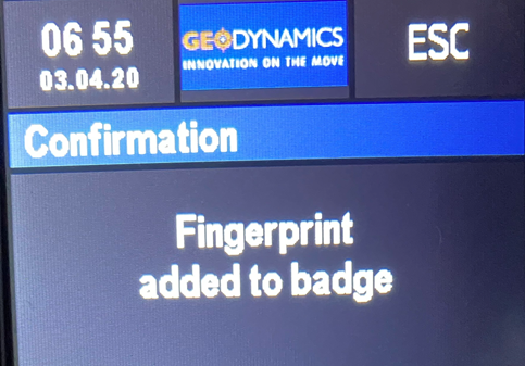 Tenez le badge devant le lecteur jusqu'à ce que vous obteniez le message suivant : "Fingerprint added to badge".