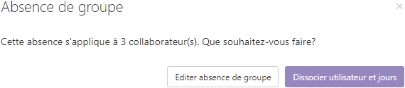 Dissocier utilisateur et jours: vous déconnectez les utilisateurs de cette absence de groupe pour permettre des changements individuels. Toutefois, ceci est définitif.