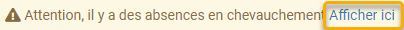 Cliquez sur le lien Afficher ici pour ouvrir la liste des absences qui se chevauchent.