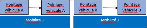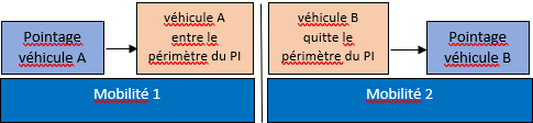 Le pointage de sortie du véhicule A peut donc être omis et remplacé par un pointage virtuel pour tous les passagers concernés au moment de la première position dans le périmètre du point d’intérêt (tout point d’intérêt appartenant au type défini).