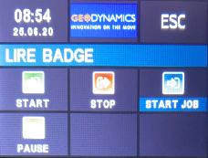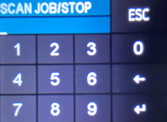 Le code scanné apparaît à l'écran. Appuyez sur la zone intitulée Scan job:[codeactivité] pour confirmer ou annuler en appuyant sur le bouton ESC.