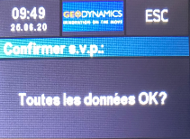 Si cela a été fait correctement, le message "Toutes les données OK" vous demandera de confirmer définitivement. Confirmez en appuyant sur la zone en dessous de sorte que le message "Sauvegarde de données réussi" apparaisse.