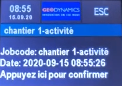 Le code à confirmer n'est pas le sous-code qui vient d'être scanné, mais le code composé complet. Les différents sous-codes sont séparés par le caractère intermédiaire. Le code permettant de mettre fin à l'activité n'en fait pas partie. Confirmez en appuyant sur cette zone inférieure ou annulez en appuyant sur le bouton ESC.