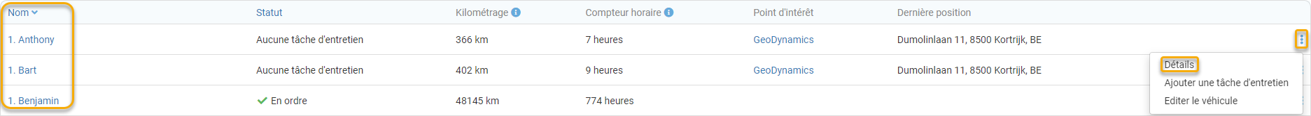 À côté de chaque véhicule à l’extrême droite, vous trouverez l'icône