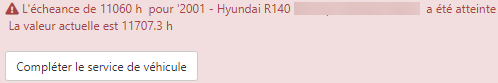 S'il s'agit d'un service basé sur les heures de fonctionnement, la valeur d'expiration dépassée sera signalée de la manière suivante: