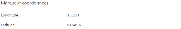 Les coordonnées du marqueur sont les coordonnées du point d'intérêt! Vous le remarquerez lorsque vous déplacerez le marqueur: les coordonnées du marqueur (ce sont les coordonnées géographiques, qui se trouvent sous la carte) sont modifiées immédiatement.