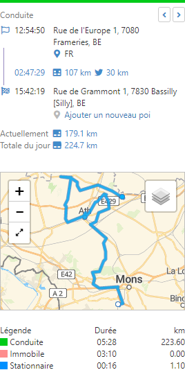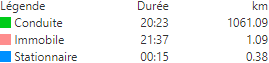 À droite, vous verrez également la légende des statuts courants. Un statut qui n’est pas courant ne sera pas mentionné dans la légende. En outre, la durée totale et la distance parcourue en kilomètres des statuts sont données à titre indicatif.