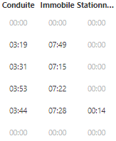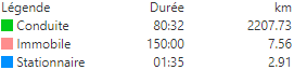 À droite, vous verrez également la légende des statuts courants. Un statut qui n’est pas courant ne sera pas mentionné dans la légende. En outre, la durée totale et la distance parcourue en kilomètres des statuts sont données à titre indicatif.