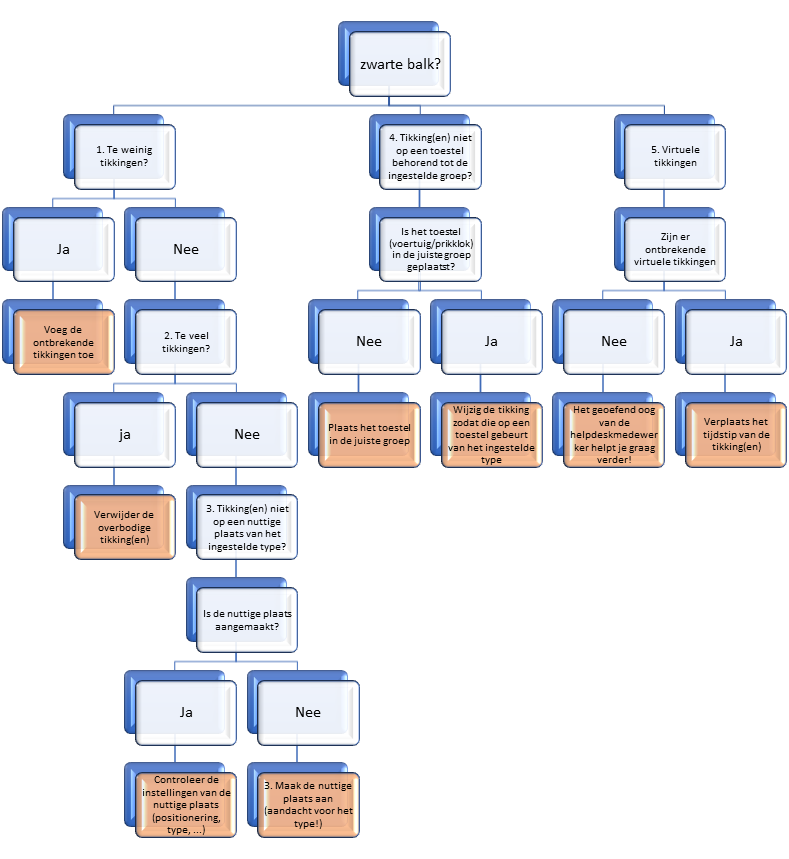Onderstaand het stroomdiagram om zelf de oorzaak van zwarte balkjes te achterhalen en op te lossen. Neem zeker de leidraad bij de hand voor meer duiding: Help ... eerste hulp bij zwarte balkjes!.
