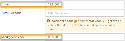 Vul voor elke gebruiker de volgende velden in: code, en Werkgevers code.