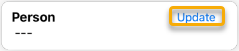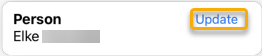 Bij het eerste gebruik van de app is de sectie Person blanco, indien reeds een gebruiker geconfigureerd werd, wordt diens naam vermeld. Maak gebruik van de knop Update om de persoon te koppelen.