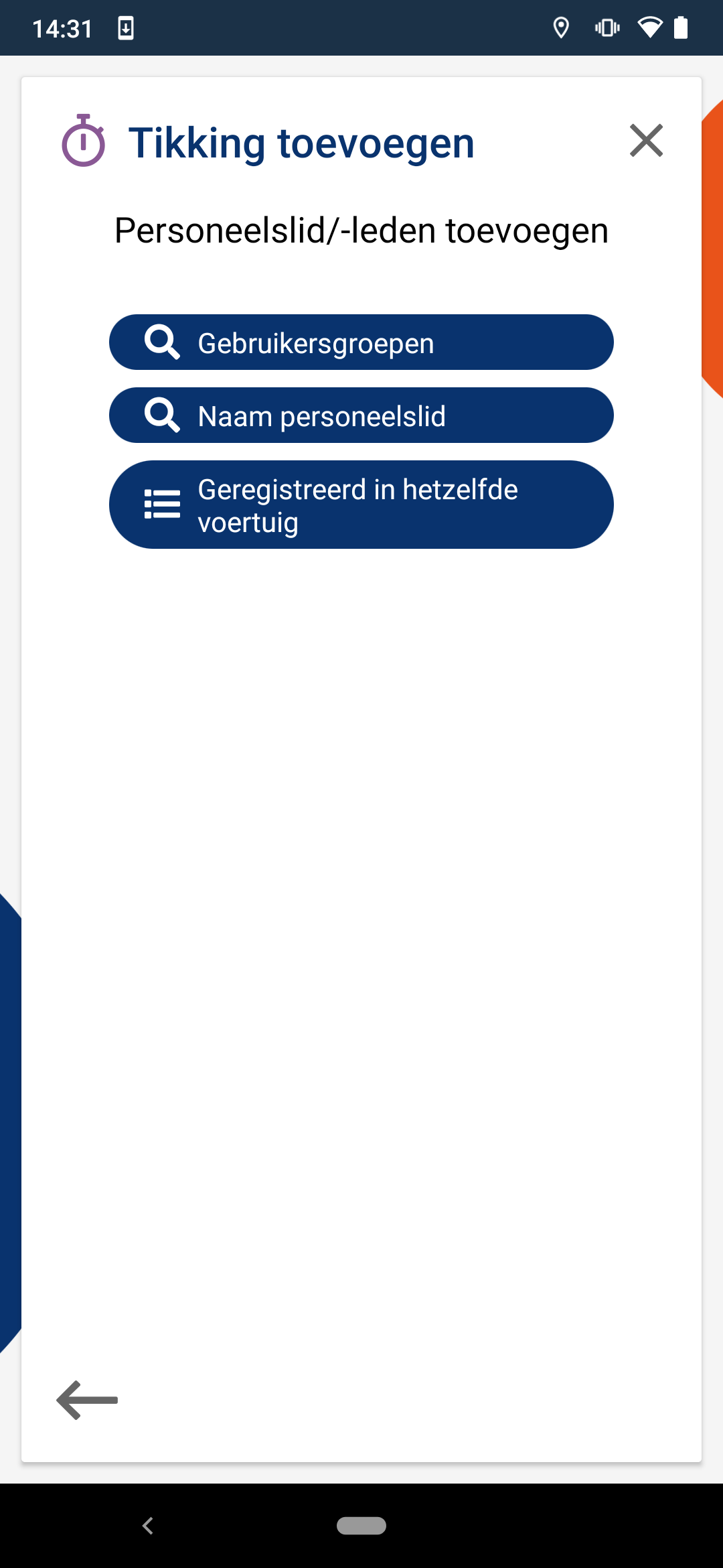 Standaard wordt de app gebruikt om individuele tikkingen aan te maken. Maar het is eveneens mogelijk om de app gebruiker toe te laten voor andere gebruikers tikkingen toe te voegen. - Enkel gebruiker: de tikking wordt toegevoegd op naam van de geïdentificeerde gebruiker. - Alle beschikbare gebruikers: de tikking wordt toegevoegd op naam van alle geselecteerde gebruikers. De selectie van gebruikers is vanzelfsprekend een bijkomende stap bij het toevoegen van de tikking. Bij het gebruik van de app, bestaan 3 mogelijkheden om vlot tot de gewenste selectie te komen: - Gebruikersgroepen: de gebruikersgroepen waar je als de gebruiker de rechten op hebt, worden opgelijst. Je hebt de keuze de volledige gebruikersgroep te selecteren, óf de groep te openen om individuele gebruikers te selecteren . Vink in de sectie Team de optie Gebruikersgroepen afschermen aan om deze mogelijkheid niet weer te geven. De rechten op gebruikersgroepen worden toegekend op de bladzijde Toegelaten resource groepen in de gebruikersgegevens (zie ook Hoe maak ik een nieuwe softwaregebruiker aan?). - Naam personeelslid: de individuele gebruikers waar je als gebruiker de rechten op hebt, worden opgelijst. Selecteer de gewenste gebruiker(s). De rechten op individuele gebruikers worden toegekend op de bladzijde Toegelaten resources in de gebruikersgegevens (zie ook Hoe maak ik een nieuwe softwaregebruiker aan?). - Geregistreerd in hetzelfde voertuig: de gebruikers met tikkingen in hetzelfde voertuig worden opgelijst. Selecteer de gewenste gebruiker(s). ![]() |