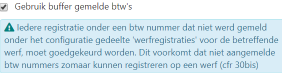 Het is niet enkel mogelijk de btw-nummers van de (onder)aannemers toe te voegen, maar indien gewenst worden registraties door personen met een btw-nummer dat niet voor deze werf werd toegevoegd niet automatisch doorgestuurd naar de RVA. Deze wachten in de wachtbuffer op goedkeuring.