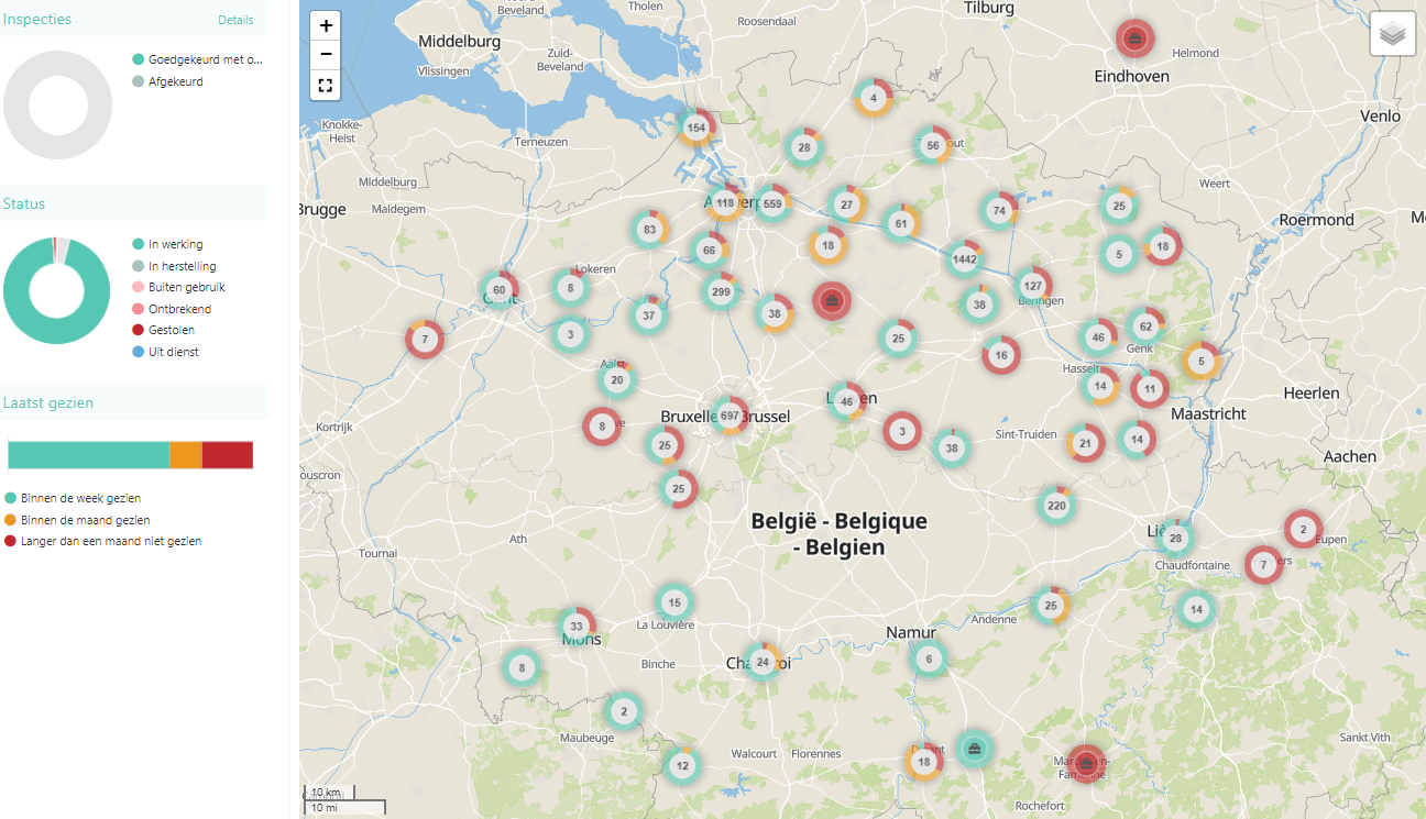 Je kan indien gewenst de assets op kaart weergeven zodat je je snel een globaal beeld kunt vormen. Maar bovenop de projectie op kaart, krijg je in een aantal staaf- en cirkeldiagrammen een paar interessante interpretaties voorgeschoteld.