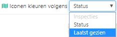 De kleur die hiervoor wordt gebruikt vertegenwoordigt standaard de kleur van de status, maar je beschikt over enkele alternatieven. Klik daartoe op de keuzelijst Iconen kleuren volgens boven de kaart.