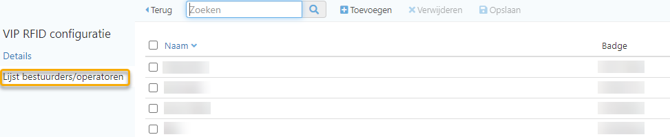 Hoe worden de toegelaten personen (badges) per voertuig/machine geconfigureerd?