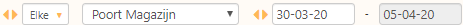- Selecteer in het linkse van beide datumvelden de gewenste datum (Hoe selecteer ik een datum?). De informatie van de volledige week zal onmiddellijk worden opgeladen. In het linkse/rechtse datumveld verschijnen de data van maandag en vrijdag van de gekozen week.