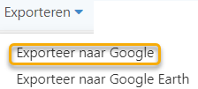 Klik bovenaan op Exporteren en kies voor Exporteer naar Google Earth.