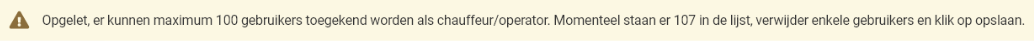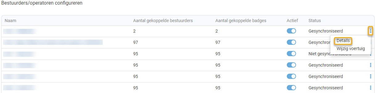 Klik links op de bladzijde Lijst bestuurders/operatoren. Hier worden de gebruikers opgesomd die gemachtigd zijn het voertuig/de machine te starten via de badge.