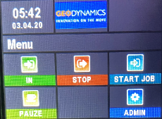 Bij het opstarten van de prikklok vind je op het startscherm de knop Admin. Om verder te kunnen gaan moet eerst het admin wachtwoord worden ingegeven, dit is 4456. Bevestig via de enter-toets.