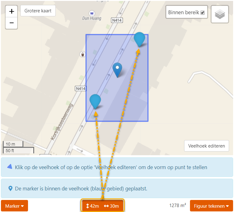 Er wordt dus een nieuwe nuttige plaats aangemaakt die alle alle geselecteerd sub-hotspots van de cluster bevat. De hoogte en breedte van het gebied zal dus telkens verschillend zijn. Het adres van de hotpot is het middelpunt van dit gebied, dus het punt op de kruising tussen de sub-hotspots.