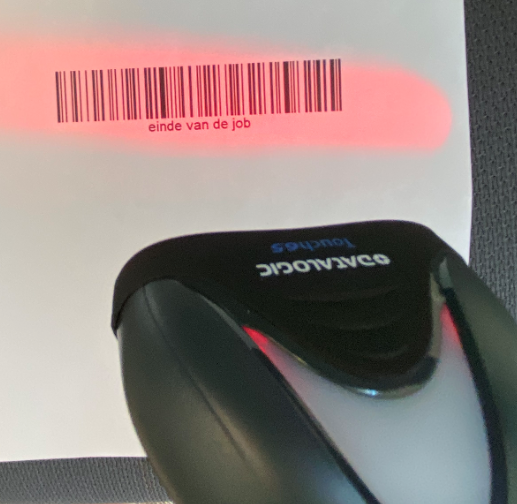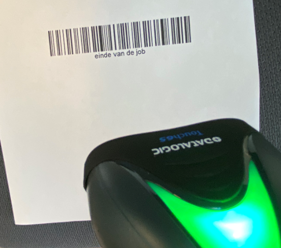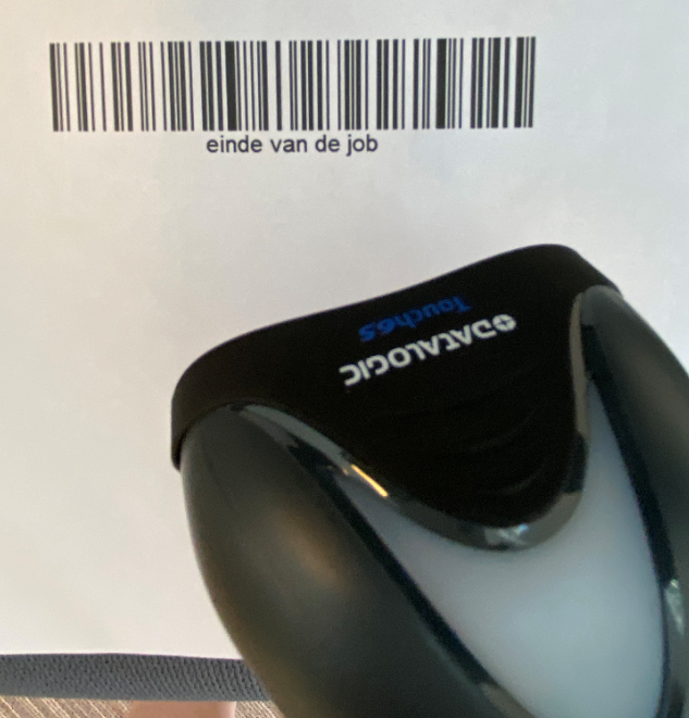 Als alle deelcodes zijn gescand, eindig je met het scannen van de barcode die is voorzien voor het beëindigen van de job.