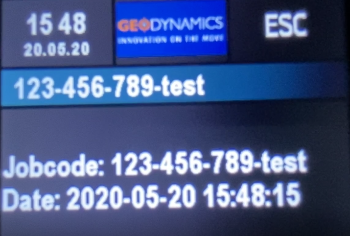 De ingescande code verschijnt op het scherm. Druk op het gebied met de tekst Scan job:[jobcode] om te bevestigen of annuleer via de knop ESC.