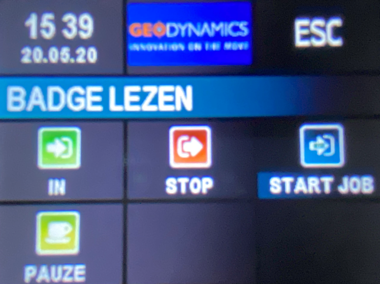 De identificatie mbv de persoonlijke badge dient eerst te gebeuren. Houd de badge voor de zone onder het scherm.